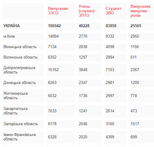 Відтак, станом на 10.00 25 березня, у Житомирській області на участь у ЗНО-2019 зареєструвалось 11 тис. 543 абітурієнта, з них 6032 - випускники загальноосвітніх закладів, 1736 учнів (слухачів) закладів профтехосвіти, 2997 студентів закладів вищої освіти та 778 випускників минулих років.