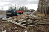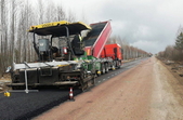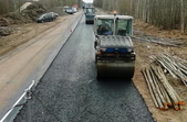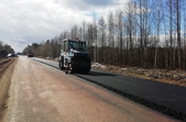 На ділянці шляху М-21 в Овруцькому районі дорожники влаштовують вирівнюючий шар асфальтобетону.