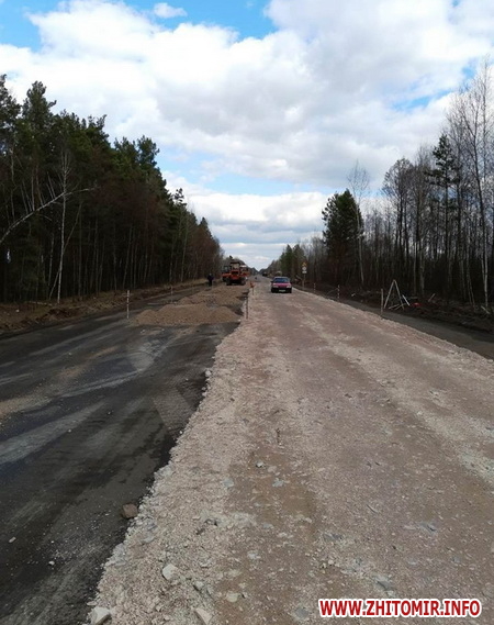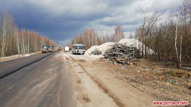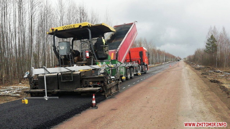 «Відповідно до розпорядження Кабінету Міністрів України від 6 лютого поточного року №130-«р, тривають роботи з поточного середнього ремонту дорожнього покриття в Житомирській області. Так, на ділянці міжнародного шляху М-21 Виступовичі – Житомир – Могилів-Подільський – км 11-000+19-000, що в Овруцькому районі поблизу кордону з Республікою Білорусь, проводяться роботи з влаштування вирівнюючого шару асфальтобетону. Цьому передувало влаштування щебенево-піщаної суміші, що слугує шаром основи», - йдеться у повідомленні.