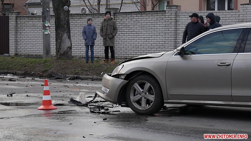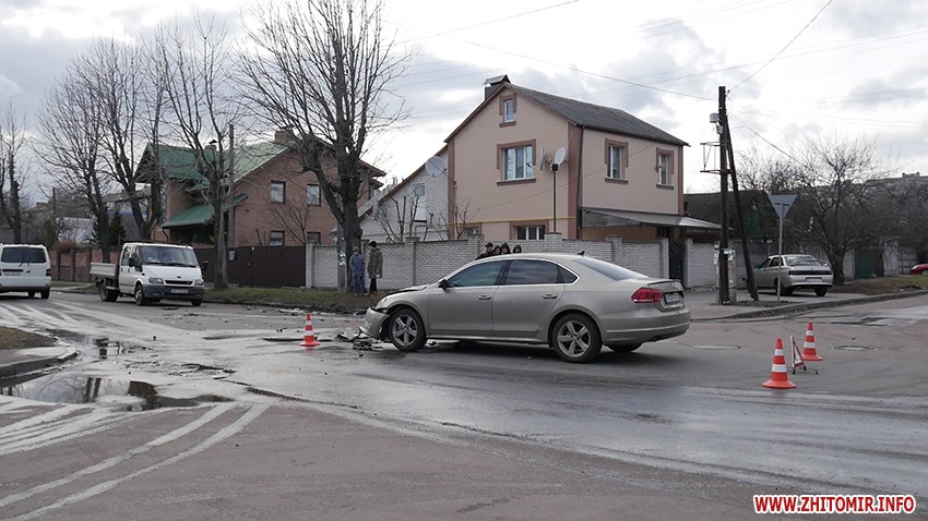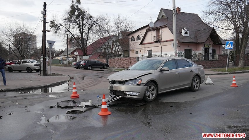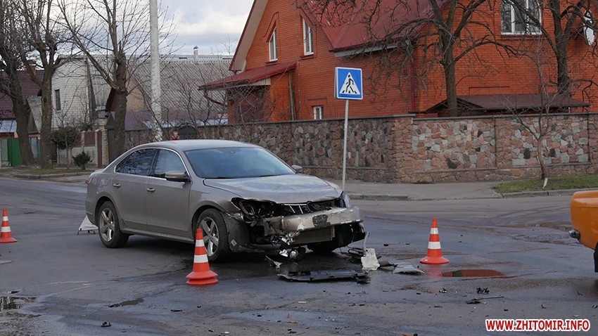 На перехресті Гоголівська-Добровольчих батальйонів (колишня Перша Партизанська), неподалік ресторану «Шашличний двір» у Житомирі, 26 березня трапилася ДТП за участю двох автівок.