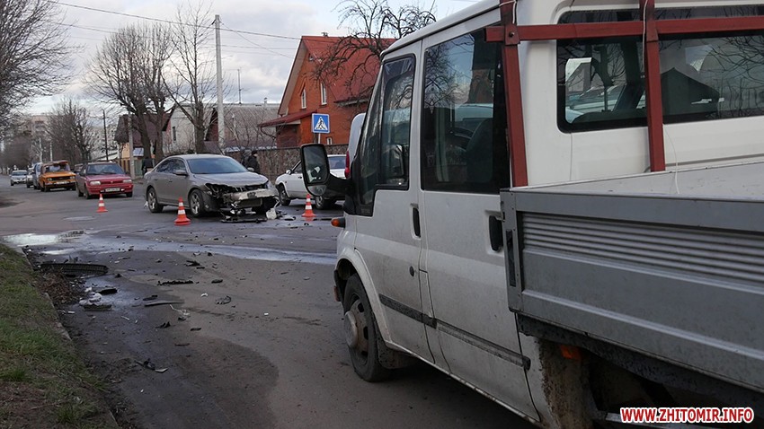 Як повідомляв Житомир.info, 25 березня на майдані Путятинському у Житомирі сталася ДТП, бо водій Chevrolet вирішив раптово змінити смугу руху і «підрізав» Skoda.