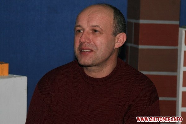 Актор Микола Карпович на прес-конференції до 65-ї річниці з дня заснування житомирського драмтеатру, фото 2009 року