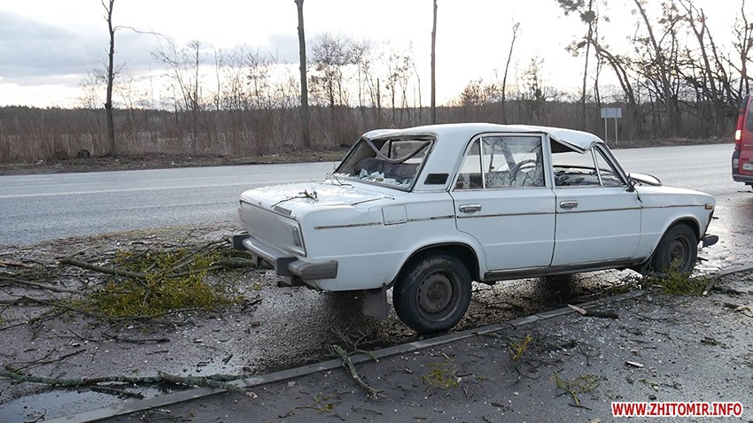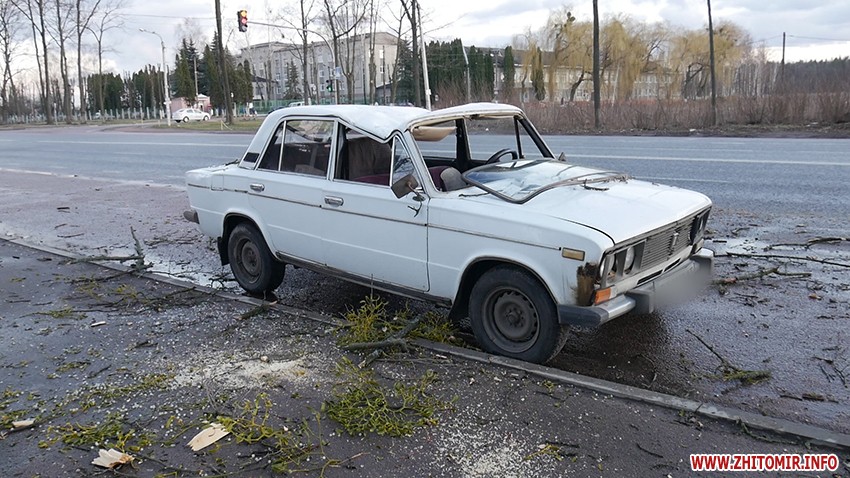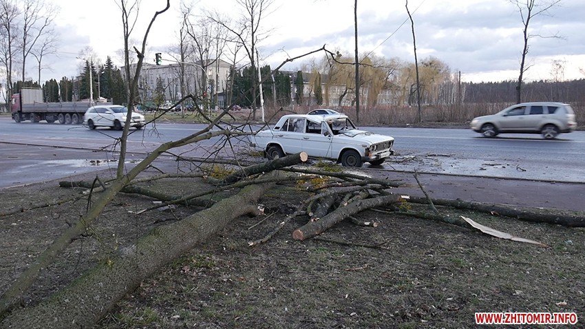 27 березня біля Житомирської обласної дитячої лікарні на Сквирському шосе, 3 на автомобіль впало дерево.