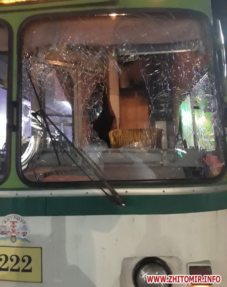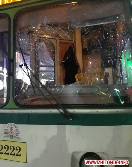 Увечері, 27 березня, в Житомирі по вулиці Київській невідомі особи під час руху тролейбуса розбили лобове скло.