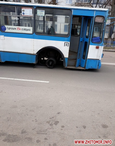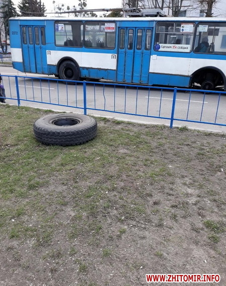 28 березня у Житомирі в тролейбуса, що їхав за маршрутом №15а, на вулиці Вітрука відпало колесо.
