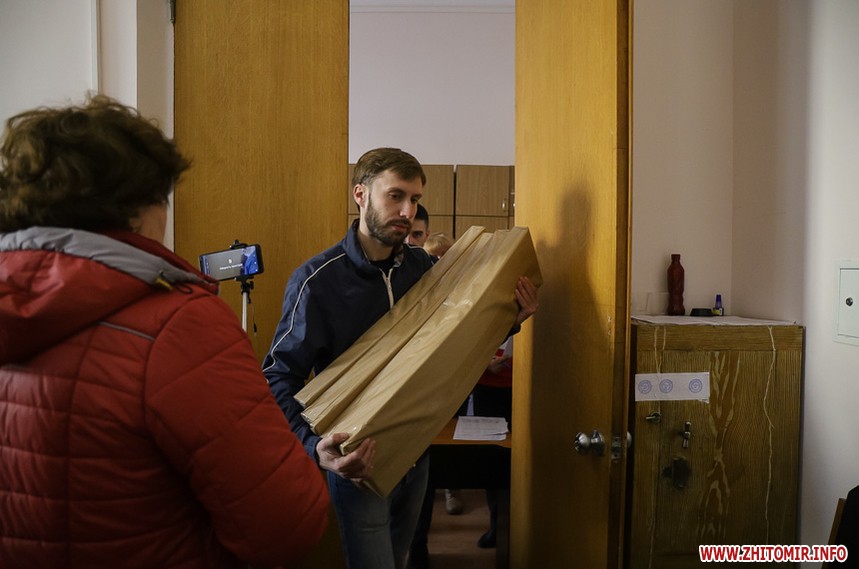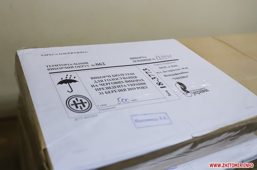 Зранку 29 березня у Житомирі члени дільничних виборчих комісій отримують бюлетені для голосування на виборах президента 31 березня 2019 року.