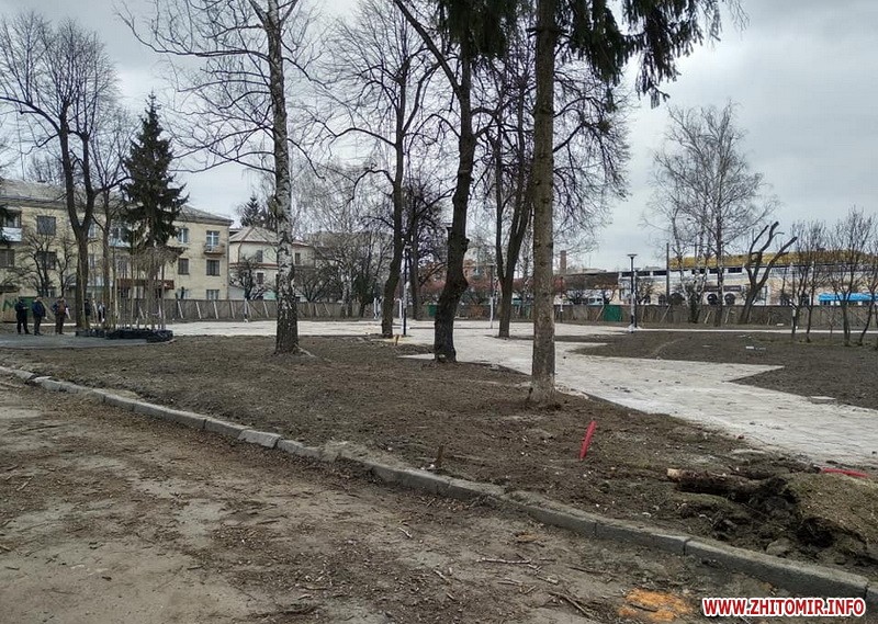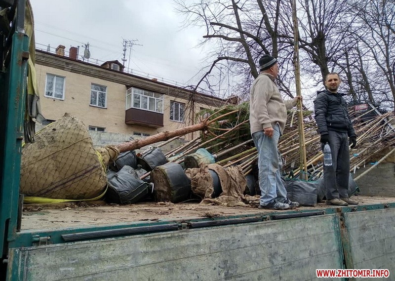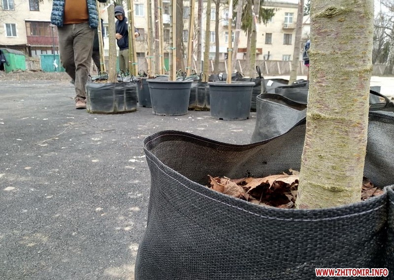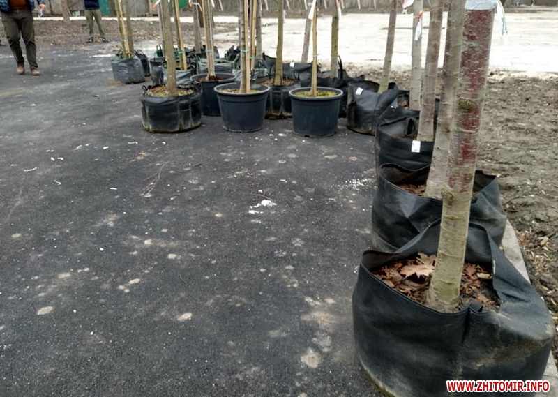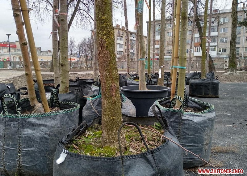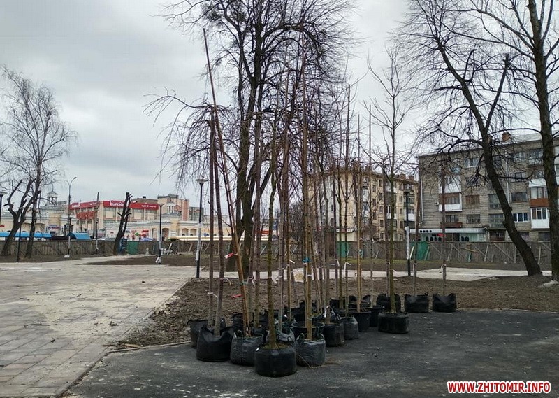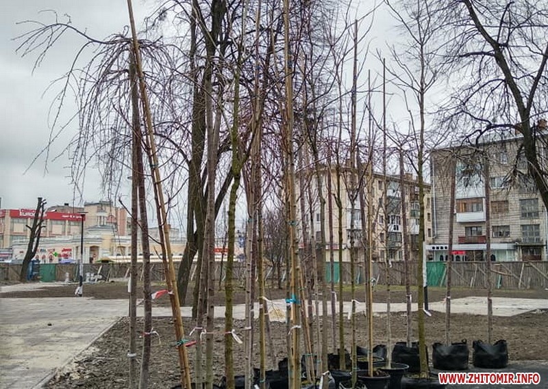 30 березня у сквер на вулицю Лятошинського в Житомирі, де на початку березня 2019 відновили роботи з реконструкції, привезли саджанці дерев.