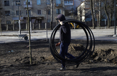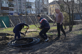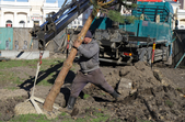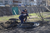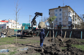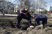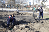 Першого квітня у Житомирі в сквері на Лятошинського активно тривають роботи з висадки декоративних насаджень.