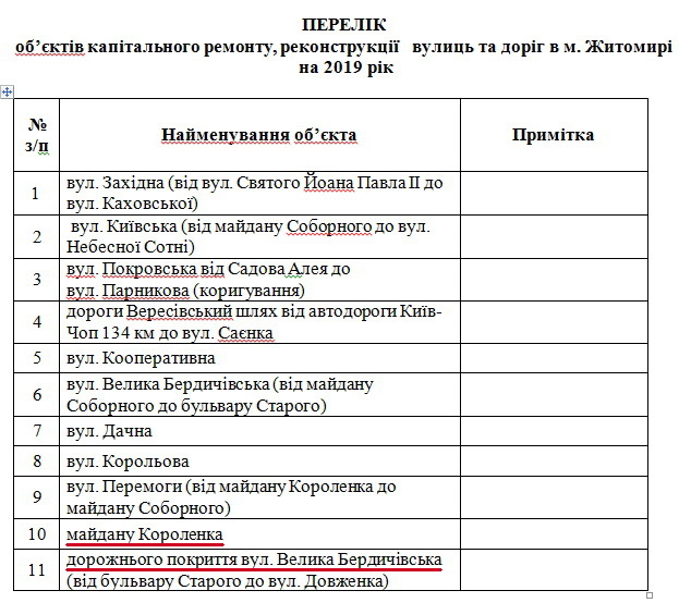До переліку з 9 житомирських вулиць, які в 2019 році капітально відремонтують, додали ще одну вулицю і майдан.