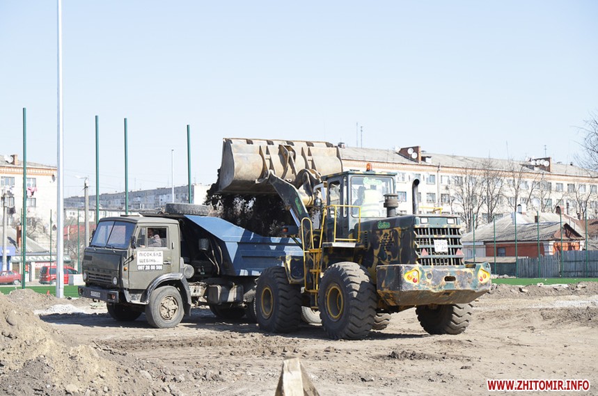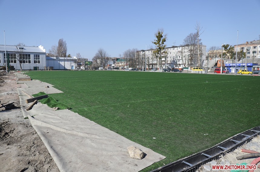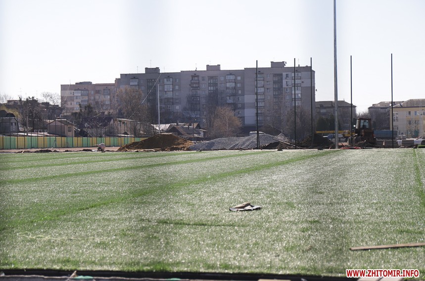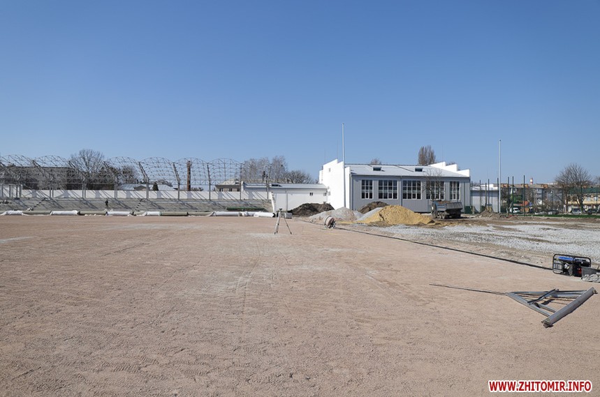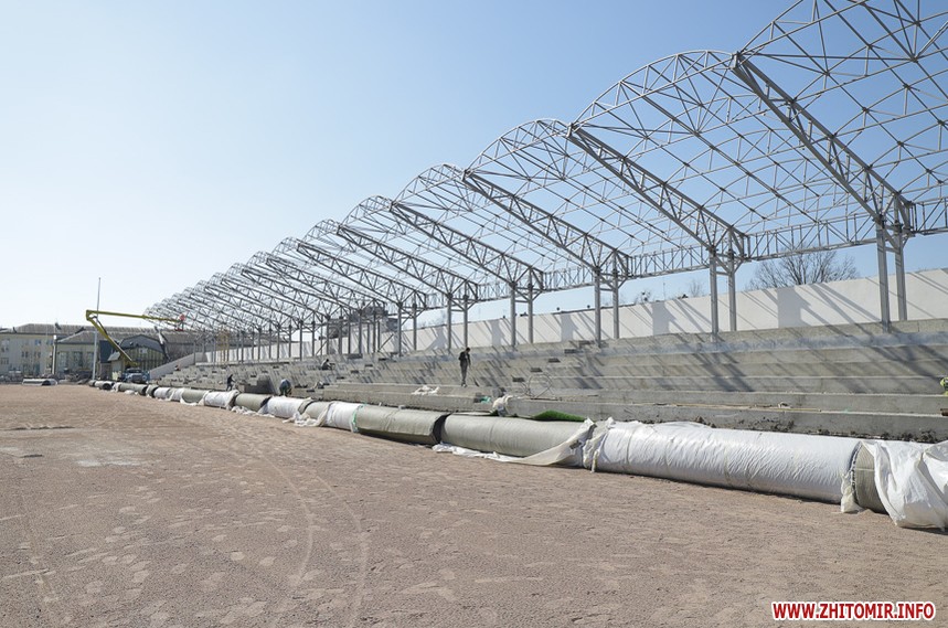Нагадаємо, близько місяця тому, 1 березня 2019 року, прес-служба Житомирської міської ради повідомляла, що на стадіоні «Спартак», зокрема, повністю виконанні роботи з підготовки основи під штучне покриття, з улаштування фундаментів під трибуни, влаштовано монолітні фундаменти під цифрове табло та коментаторську кабіну, виконано монтаж каркасу коментаторської кабіни тощо.