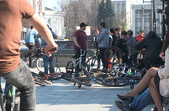 «Ми - райдери, катаємось на велосипедах, скейтбордах, самокатах. В основному ми зараз займаємось цим на площі, тому що це найбільш зручна вулиця, аби кататись. У нас тут є сходи, парапети, грані, на яких ми можемо навчитись різним трюкам. Дуже хочемо, щоб нам побудували скейт-парк, тому що кататися немає де. Нам потрібні парапети, фанбокси, все для того, щоб ми могли розвиватись», – розповідає Денис.