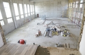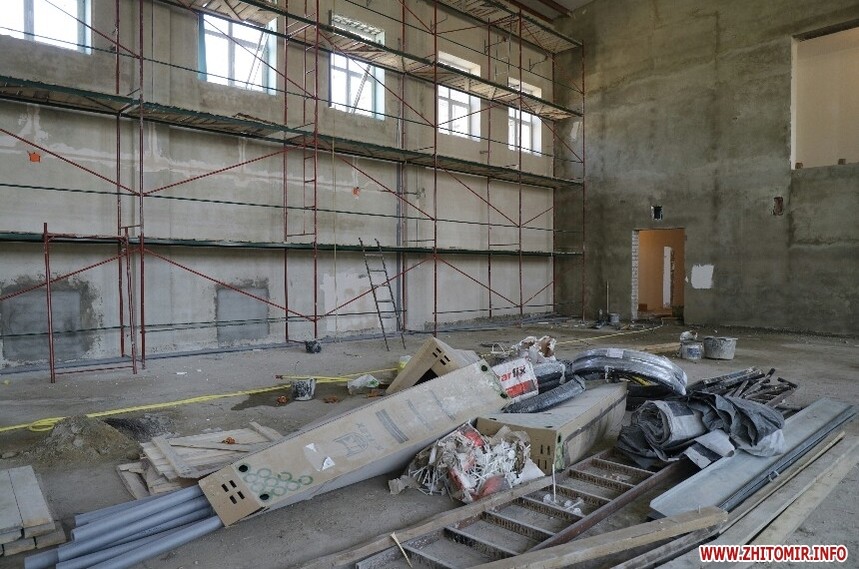 Станом на 5 квітня спортзал поштукатурений, стоять нові вікна. Усередині ремонт ще в розпалі: на підлозі металеві конструкції, бетономішалка, будівельні суміші, розставлені вишки і «ліса». У допоміжних приміщеннях та роздягалках готовність дещо вища: пофарбовані стіни, робітники кладуть ламінат. Роботи мають бути завершені до 1 вересня 2019 року.
