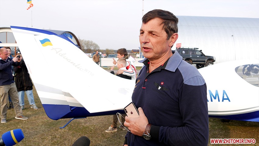 «Ось на цьому маленькому літаку ми за три дні плануємо облетіли рекордну кількість аеродромів і зафіксувати цей рекорд в Національному реєстрі рекордів, заявка подана. Ми в кожному аеродромі обов'язково тримаємо табличку із назвою міста та робимо знімок місцевої архітектури, щоб можна було довести. Наша мета показати, що в Україні є потенціал для розвитку малої авіації. Для чого потрібні такі маленькі літаки та де їх можна використовувати? Це сільське господарство, рятувальні та військові цілі, розвідка, медицина, частина транспортної індустрії. У багатьох країнах ми користуємось авіамаршрутками. Ми літали на літаках двох, чотирьох, шестимісних за невеликі гроші. Ми переміщались туди, де немає доріг. У нас дороги погані, можна було б налагодити таку систему та зробити так, щоб із Житомира в Бердичів можна долетіти приблизно за 10 хвилин. Більшість літаків, які стоять на цьому аеродромі живляться 95-м бензином, зі звичайної заправки, і їдять його стільки, скільки і джип, а цих джипів у нас повно. Експлуатація, як для однієї людини, то може бути дорогувато, але якщо використовувати в комерційних цілях, то ціна може бути прийнятною», - розповідає ведучий програми «Світ навиворіт» Дмитро Комаров.