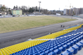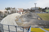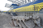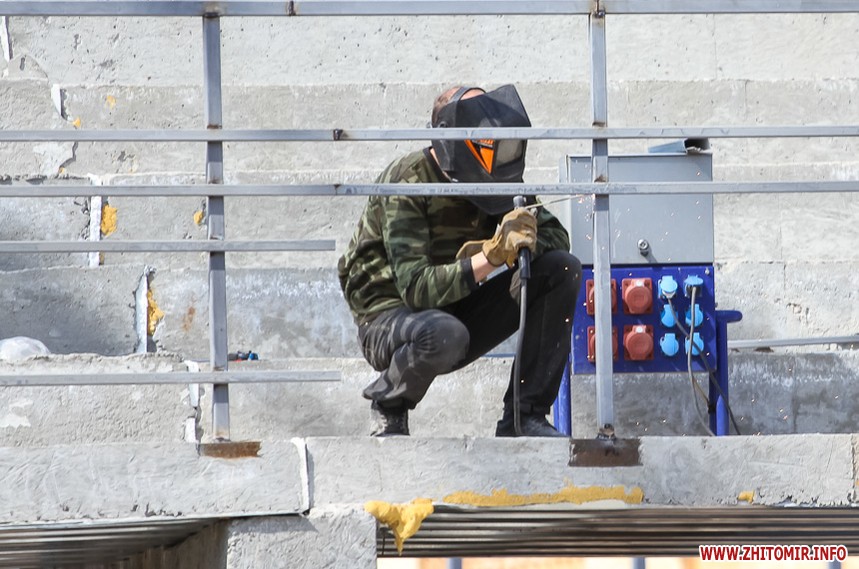 На разі на стадіоні вже завершують встановлення конструкції під накриття західної трибуни, монтаж металоконструкції під освітлення, тривають підготовчі роботи до влаштування резинового покриття для бігових доріжок.