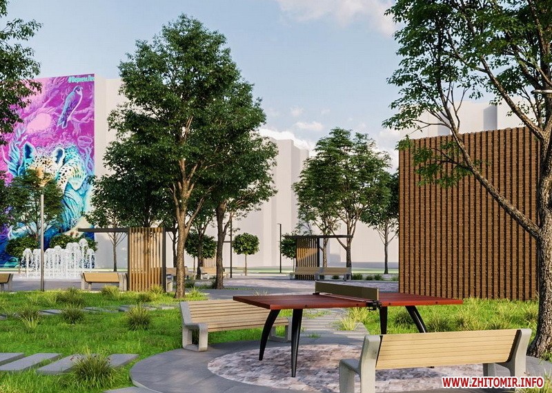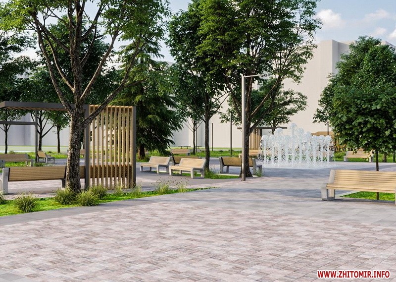 Нова тротуарна плитка, лавки, сучасні ліхтарі, мурали на будинках, фонтан та багато зелені – все це зображено на фото дизайн-проекту майбутньої реконструкції Польського бульвару, що в мікрорайоні Маликова.