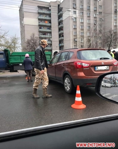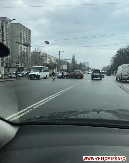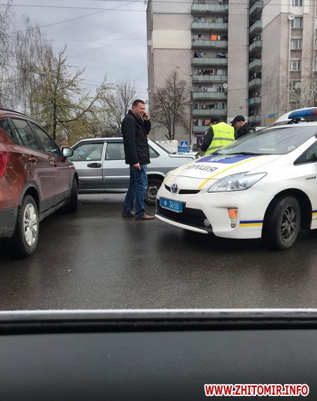У Житомирі 9 квітня поблизу панчішної фабрики сталася дорожньо-транспортна пригода за участі двох автомобілів, на місці події працюють правоохоронці.