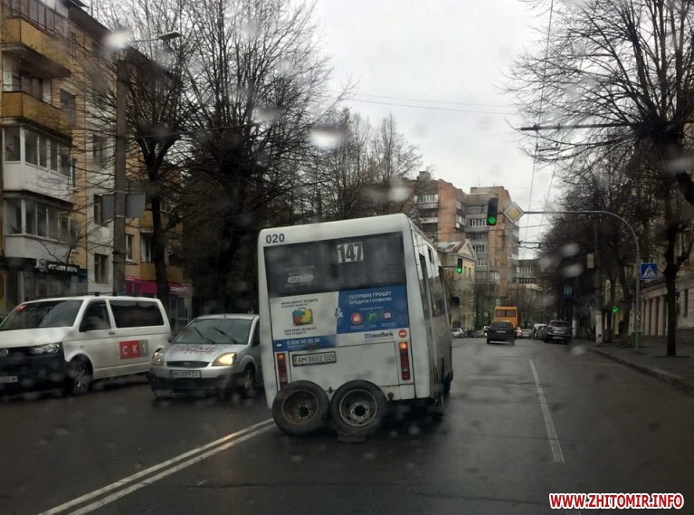 12 квітня у маршрутного таксі № 147 в Житомирі під час руху відпало колесо.