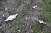 «У Баранівці знову береги Случі встелені мертвою рибою. Сьогодні зранку на річці Случ у Баранівці вздовж берегів поспливала мертва риба. На поверхні води, хапаючи ротом повітря, намагається врятуватися та, що ще жива. Кілька людей підхватнями виловлюють рибу з метою випустити в ставки і таким чином врятувати», - розповіли у міськраді.