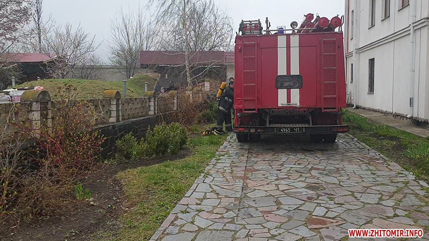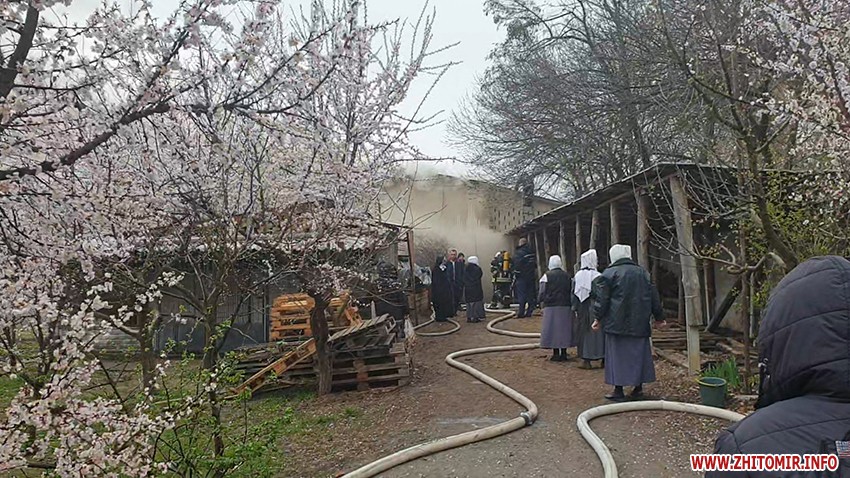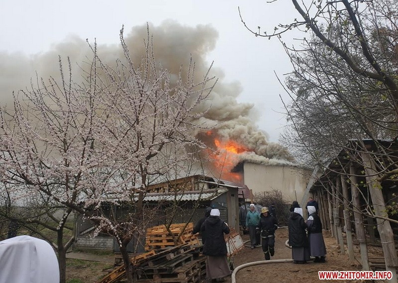 «О 15.38 год. надійшло повідомлення про пожежу у підсобному приміщенні та території монастиря сестер Бенедиктинок, що на вулиці Короленка, 41-В. На гасіння виїхали дві пожежно-рятувальні частини Житомира, задіяна також автоцистерна для підвозу води», – поінформувала керівник сектору зв'язків зі ЗМІ та роботи з громадськістю управління ДСНС України в Житомирській області Оксана Ковальчук.