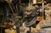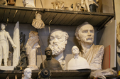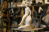 Це - мармур, це - гіпс, це - бронза… Улюблений матеріал у мене - мармур. Ось така в мене тут є річ у мармурі - засмучена дівчинка. Я ще взяв такий смугастий мармур. Він лягає по формі і підкреслює форму фігури.