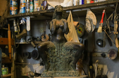 То все інструменти, щоб ліпити. А твердий матеріал – бронзу – чеканити треба. Купа інструментів: стрем’янка, скарпелі, шпунти, напилки, машинки, фрези – все-все-все використовується. Більшість інструментів скульптори роблять собі самі.
