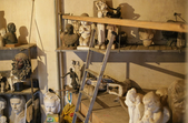 Оце піч. Тут я печу буряки, моркву, картоплю, капусту. Тут купа інструментів всяких, скульптури, гіпс. Воно все трохи в безпорядку, але в творчості порядку не буде. Одним словом – майстерня.