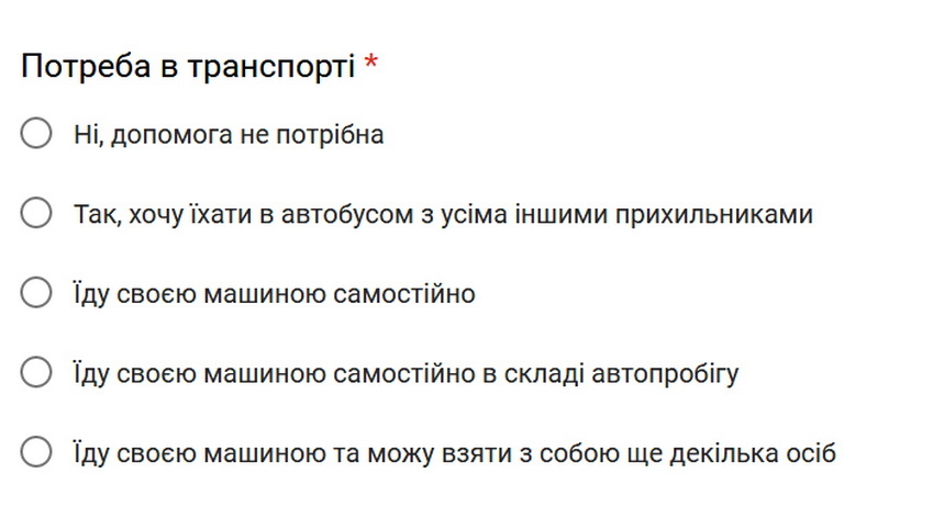 Охочим долучитися пропонують заповнити анкету, де є пункт про потребу в транспорті.