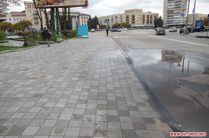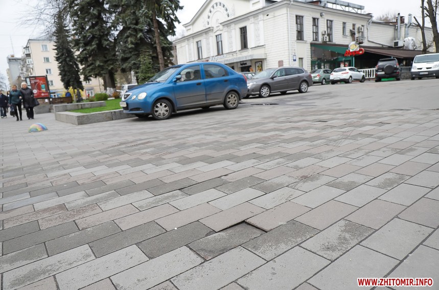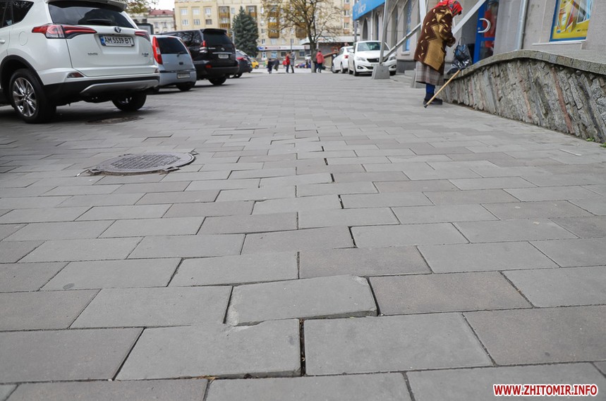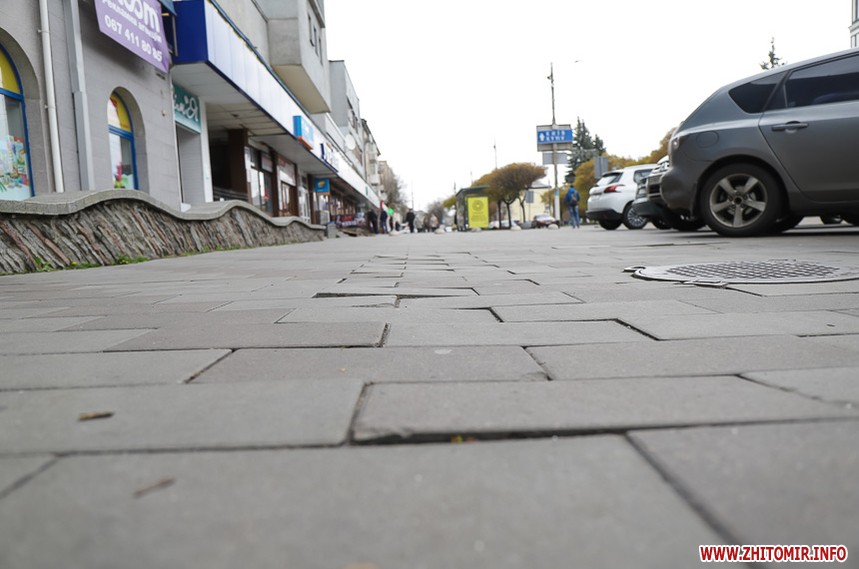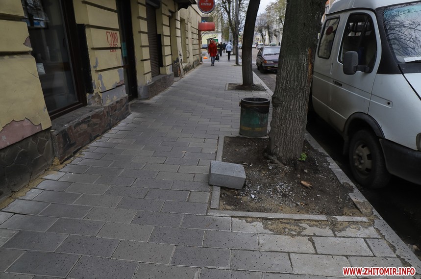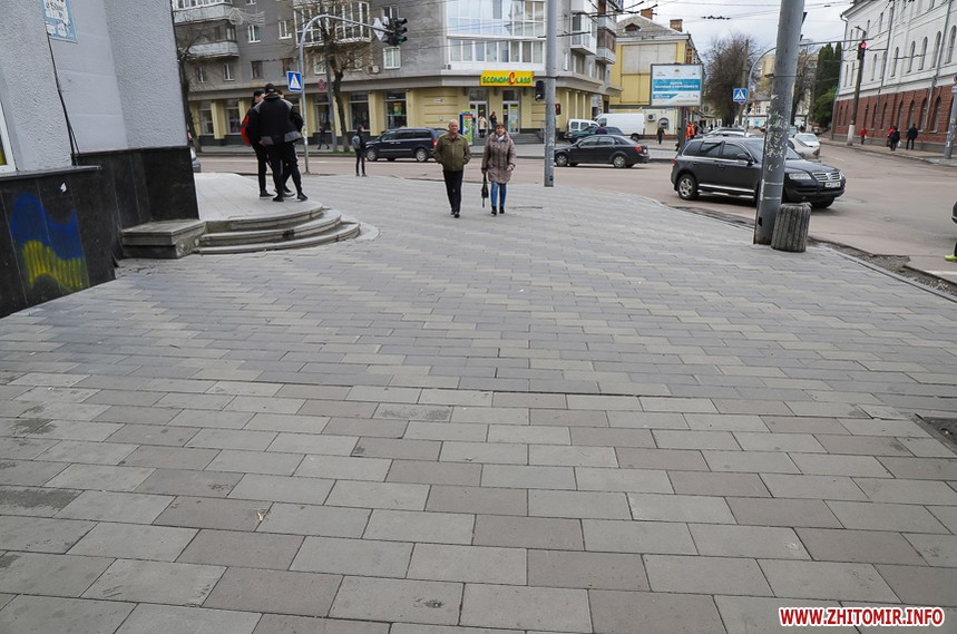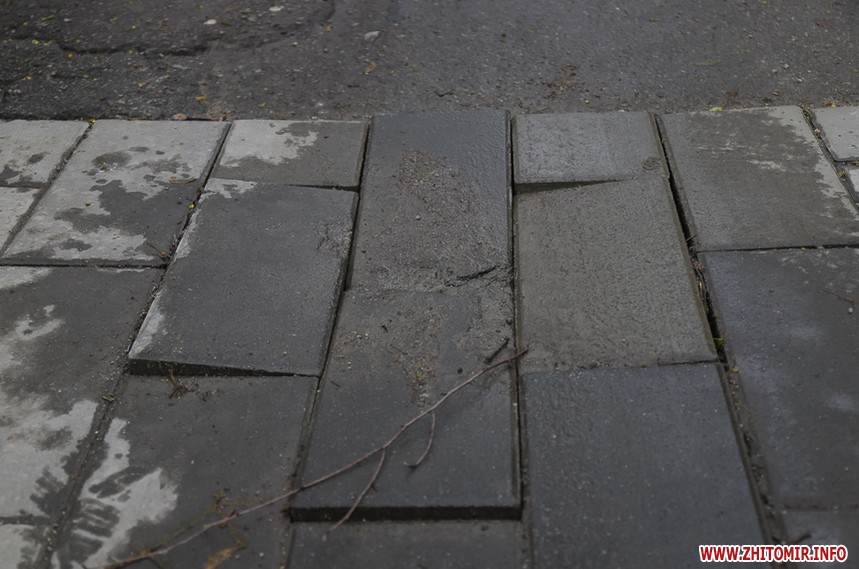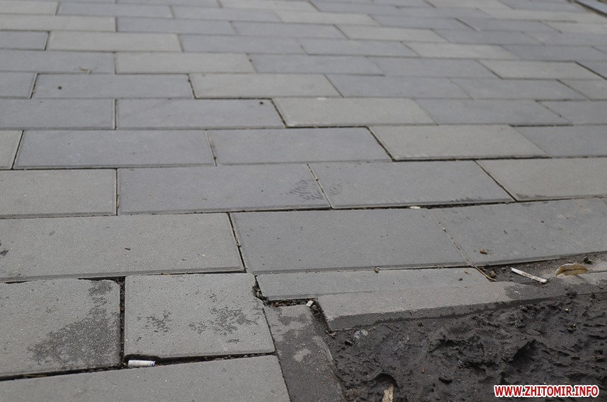 Зараз плитка, яку вкладали два роки тому, у деяких місцях вже має не дуже привабливий вигляд, й колір минулогрічної відрізняється від того, який був в 2016 році, це гарно видно на розі вулиць Театральна та Велика Бердичівська, біля магазину «Брейн».