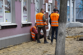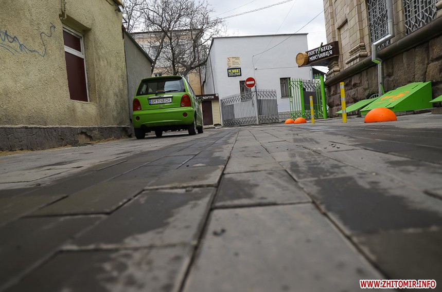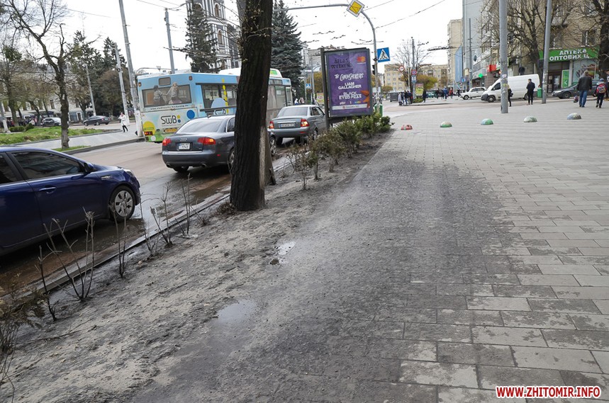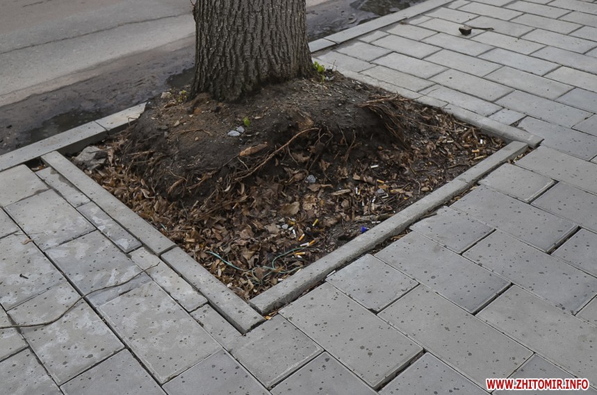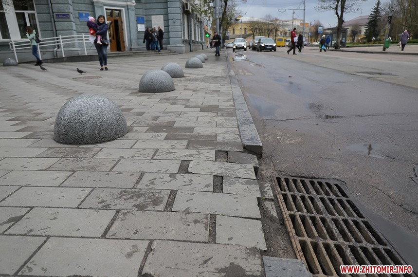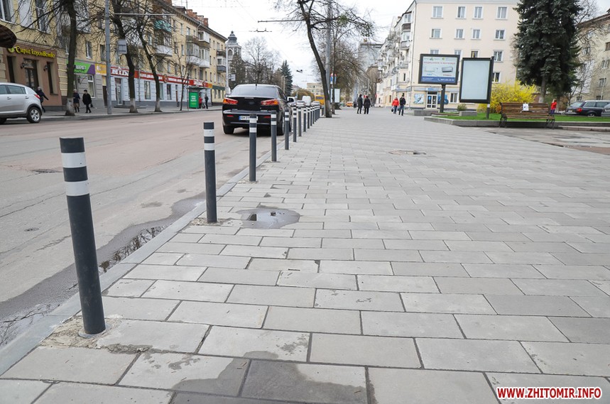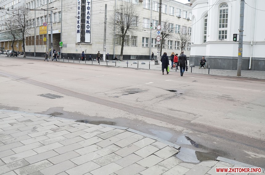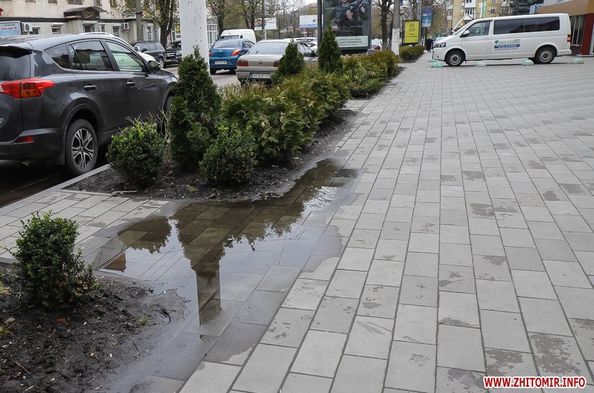 Зараз плитка, яку вкладали два роки тому, у деяких місцях вже має не дуже привабливий вигляд, й колір минулогрічної відрізняється від того, який був в 2016 році, це гарно видно на розі вулиць Театральна та Велика Бердичівська, біля магазину «Брейн».