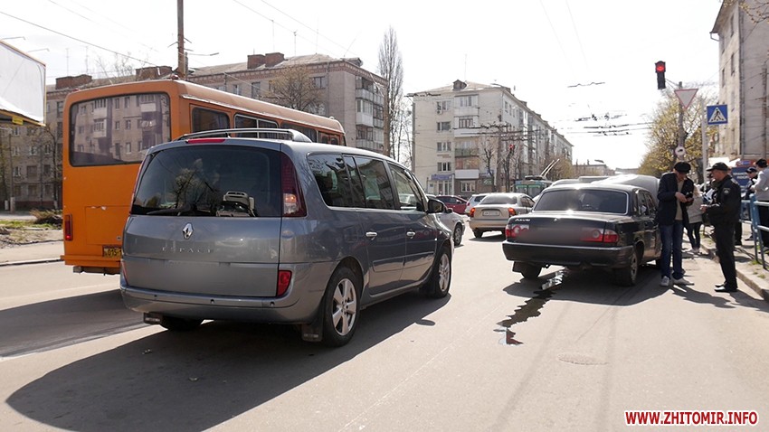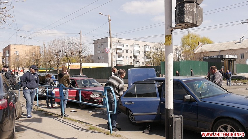 18 квітня на перехресті Покровська-Грушевського у Житомирі зіштовхнулися кілька автомобілів.