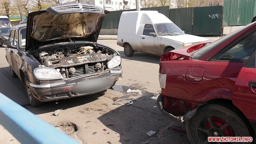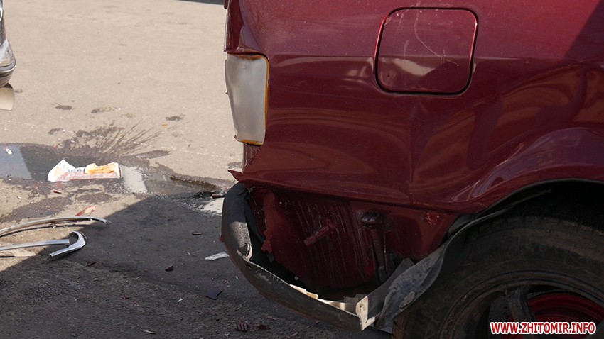 Нагадаємо, 10 квітня неподалік супермаркету «Олді» в Житомирі зіткнулись бус та легковий автомобіль, у легковика відпало колесо.