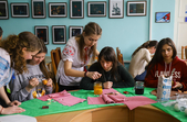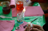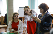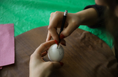«Для мене це досить цікаво, я таким займають вже вдруге в своєму житті і я почула багато нових нюансів, яких не знала раніше. Щодо моєї писанки, я зробила все за вказівками майстрині. Я намалювала зірку, рибку, яку я знайшла на плакаті і яка символізує багатство, квіточку та листочок. Сподіваюсь, що це мені якось допоможе», – каже учасниця майстер-класу Євгенія.