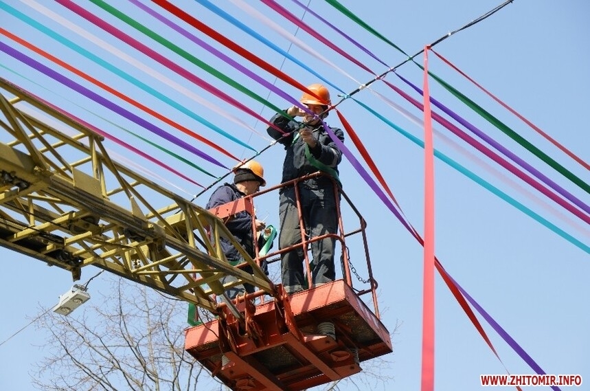 Зранку 19 квітня житомирську Михайлівську почали готувати до Великодніх свят: зняли «зимові» сніжинки та парасольки з ілюмінацією та почали розвішувати різнокольорові стрічки.