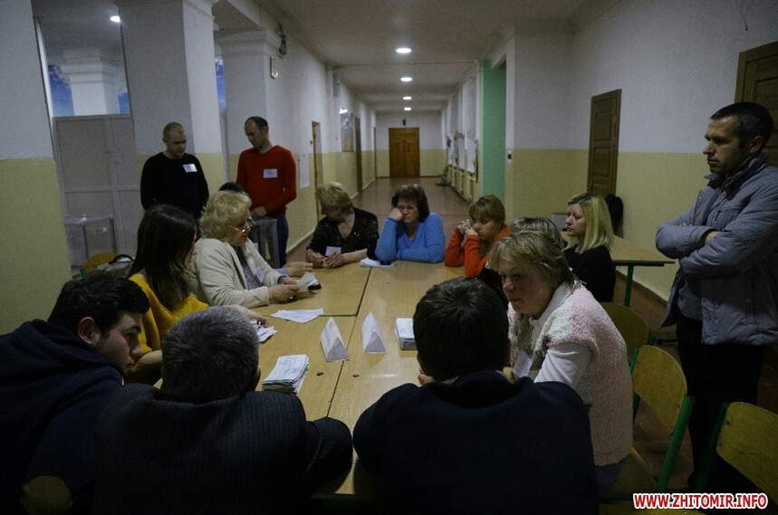 Фотокореспондент Житомир.info за кілька хвилин до закриття потрапила на виборчу дільницю №181365, що знаходиться в приміщенні ЗОШ №36, тож змогла показати, що відбувається за зачиненими дверима, як «гасять» невикористані бюлетені, розпломбовують скриньки для голосування та, власне, рахують голоси.