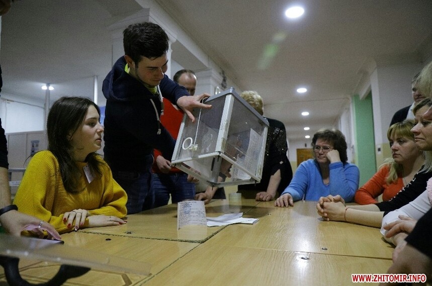 До 20.00 21 квітня житомиряни мали змогу зробити свій вибір і проголосувати за обраного кандидата в президенти України. А вже з 20.00 усі виборчі дільниці Житомира зачинили свої двері та приступили до підрахунку голосів.