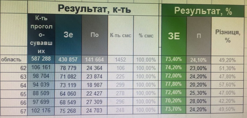 ГО «Команда Зе», яка проводить паралельний підрахунку голосів, отримала попередні дані з усіх 1452 дільниць Житомирської області.