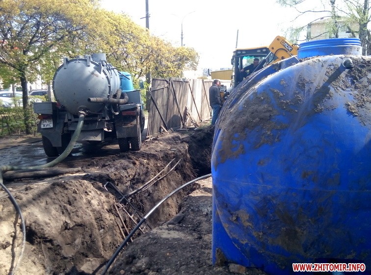 У Житомирі під час проведення ремонтних робіт у сквері на Лятошинського відбувся зсув ґрунту, який пошкодив трубопровід. На час проведення ремонтних робіт водоканал припинить водопостачання прилеглих багатоповерхівок.
