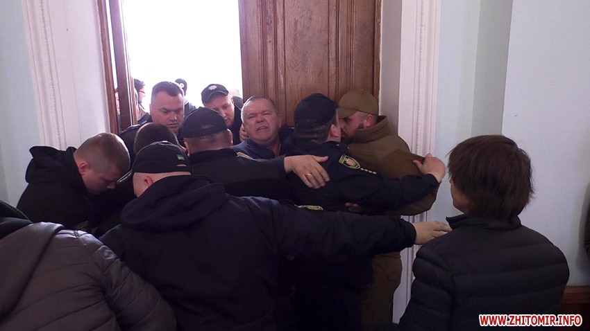 23 квітня у міськраді на початку сесії у залі виникла сутичка та штовханина за участі «Муніципальної варти» та «активістів».