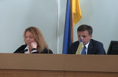 На черговій сесії 23 квітня остання подякувала місцевим чиновникам за співпрацю та розуміння. Ті у відповідь заходилися аплодувати Краснопір стоячи.