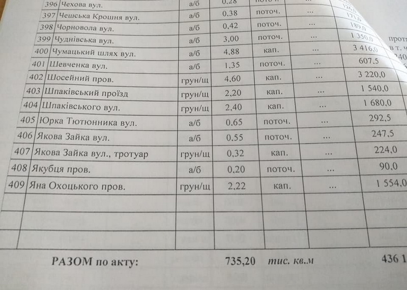 «Було обстежено 409 вулиць і провулків та встановлено, що вони потребують ремонту, і це вже 25% від усіх доріг міста. Однак продовжують надходити заявки та пропозиції стосовно незадовільного стану доріг і на інших вулицях, і цей процес триватиме до осені», – уточнив заступник Житомирського міського голови.