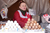 «Яйця не дуже подорожчали, такі як і в минулому році. Ціни доступні, яйця хороші, гарненько беруть. Більшенькі 25-27 грн, меншенькі 18-21 грн», - коментує продавчиня Валентина.