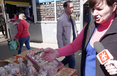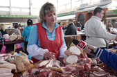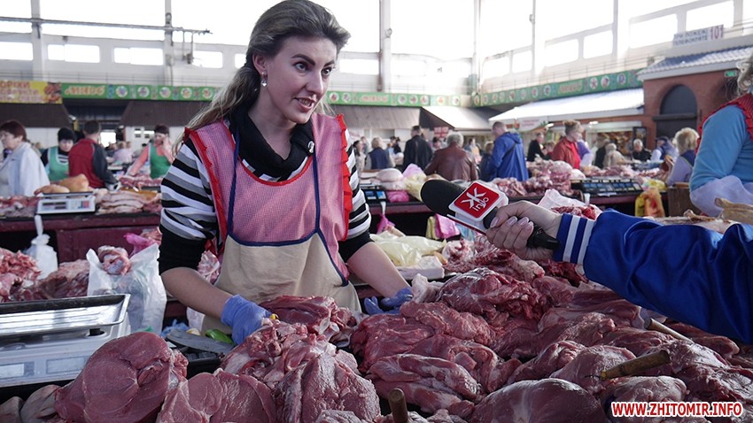 «Перш за все беруть, щоб запекти, – буженинка має бути на столі. Беруть стегенця - 130 грн/кг, є на фарш, дешевше - 120 грн, 100 грн, 85 грн. Асортимент товару великий. Якщо порівняти з минулим роком ціни, не відрізняються», - рекламує свій товар Інесса.