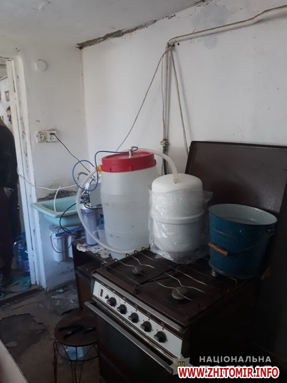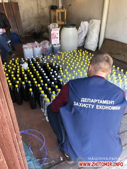 «24 квітня оперативники управління захисту економіки в Житомирській області та слідчі ГУНП Житомирщини провели 26 обшуків у місцях функціонування виявлених ними незаконних виробництв фальсифікованих алкогольних напоїв та проживання причетних до цього членів злочинної групи. У результаті вилучено тонну спирту, 600 л коньяку та ще майже 400 л горілки та вина, ймовірно, підроблених», - йдеться у повідомленні поліції.