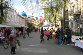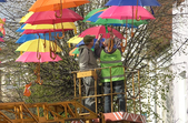 «Старі парасольки вже просто прийшли в негодність, пересохли, вицвіли, тому купили нові парасольки в цьому році. Куплені вони за спонсорські кошти, дякую нашим підприємцям. Ми звернулися до них і зібрали близько 90 тисяч гривень на святкування саме ярмарку, парасольки куплені за ці спонсорські кошти. Їх ціна близько 36 тисяч гривень. Ми в цьому році закупили 280 парасольок, порівняно з минулим роком у нас було 186. Зараз повісили 186 парасольок, але до Дня Європи повісимо залишок», - говорить секретар Житомирської міської ради Наталія Чиж.