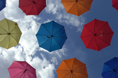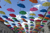 У Житомирі на пішохідну вулицю Михайлівську закупили нові різнокольорові парасольки, більша частина з яких вже прикрашає місто.