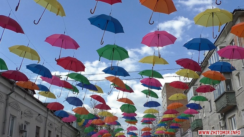 Як повідомляв Житомир.info, 20 квітня 2019 року на Михайлівській КП «Зеленбуд» розвісив близько 200 різнокольорових парасольок.