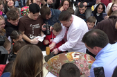 «Сьогодні ми хотіли познайомити наших житомирян з обрядовими традиціями, які притаманні для цього свята Великоднього, і плюс трошки підсолодити життя. Ми запросили «Місію в Україні», фонд «Разом до життя», де онкохворі дітки. Запросили для того, щоб просто пригостити їх, як це робилось завжди на Великодні свята, коли просто пригощали людей, зичили один одному здоров'я, щастя і благополуччя, ну і, власне, це сього тут відбувається. Писанку робили у Львові майстри шоколадної справи, її вага сто кілограмів, а розмальовували ми вже її тут, на місці, майстрині народної творчості. Розмалювали її в автентичному вигляді для того, щоб таке показати. Там і петриківка, і народні обрядові традиції, і орнаменти, які притаманні нашій поліській землі. Спочатку роздаватимемо «Місії в Україні» і «Разом до життя», а потім всім бажаючим», - розповіла начальник управління культури та туризму Житомирської ОДА Тетяна Парфентієва.