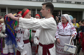 Перед тим, як розбити яйце, присутнім продемонстрували народні обряди, які раніше виконували на свято. Разом із фольклорним гуртом «Джерельце» усі співали Великодні пісні та водили хороводи.
