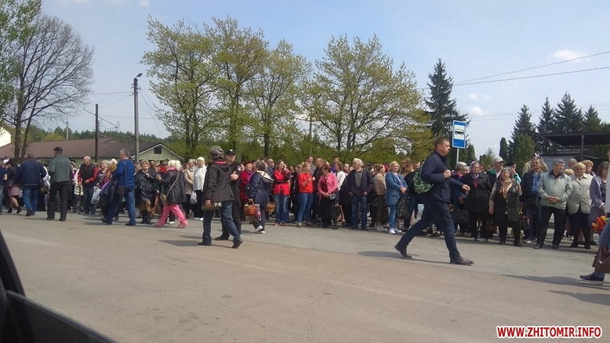 У Житомирі 5 травня, у провідну неділю, біля місцевих кладовищах затори та дуже багато людей, які чекають на маршрутки.