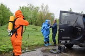 Як виявилось на місці пригоди, невідомі вже поцупили частину бочки, яку відрізали спецслужби, щоб загасити реакцію.